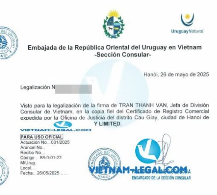Kết quả chứng nhận lãnh sự tài liệu cấp tại Việt Nam (Đăng kí kinh doanh) sử dụng tại Uruguay ngày 26.05.2025