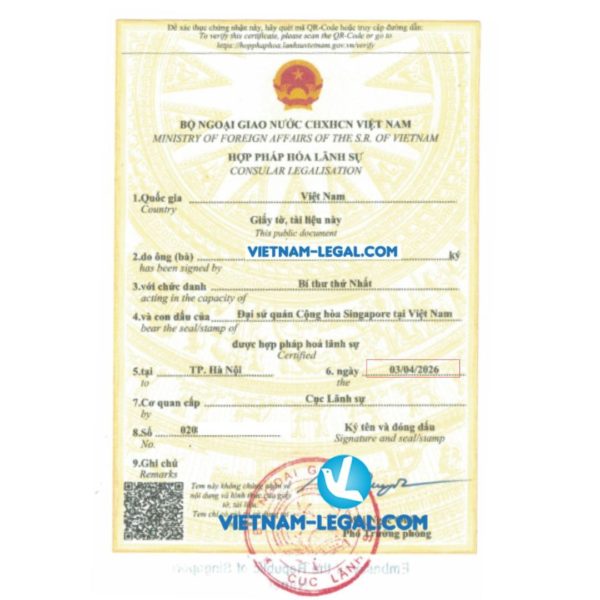 hopphaphoalanhsu.vn cung cấp dịch vụ tư vấn, hỗ trợ xin hợp pháp hóa lãnh sự, chứng nhận lãnh sự các giấy tờ, tài liệu cấp tại Singapore để sử dụng tại Việt Nam.