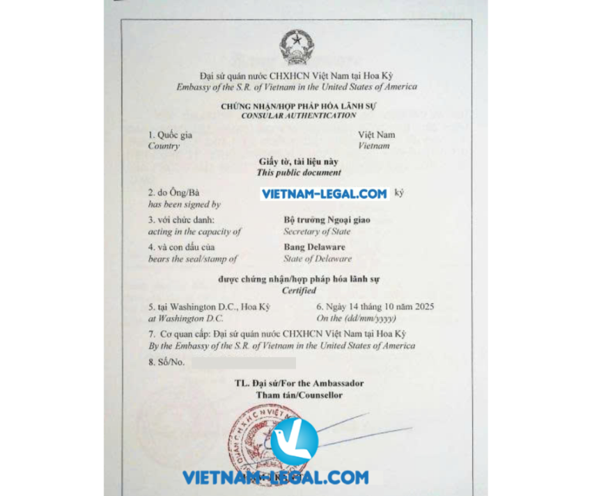 Bước 1: Chứng nhận lãnh sự tại Bộ Ngoại giao Việt Nam